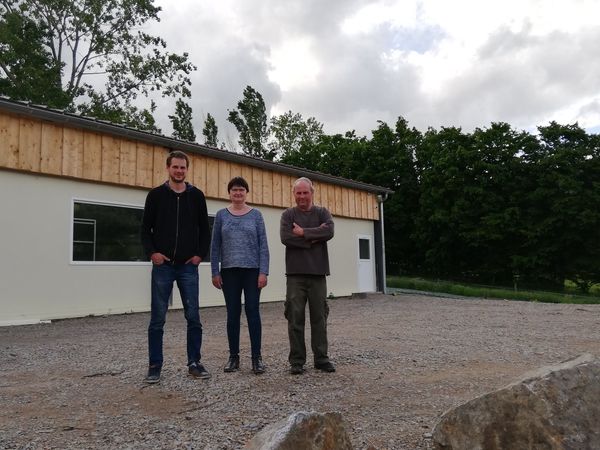 Depuis début décembre, les trois associés apprécient leur laboratoire de transformation tout neuf ; laboratoire largement auto-construit et équipé de matériels performants. Ils y préparent la viande fraîche et les produits de charcuterie – salaison.